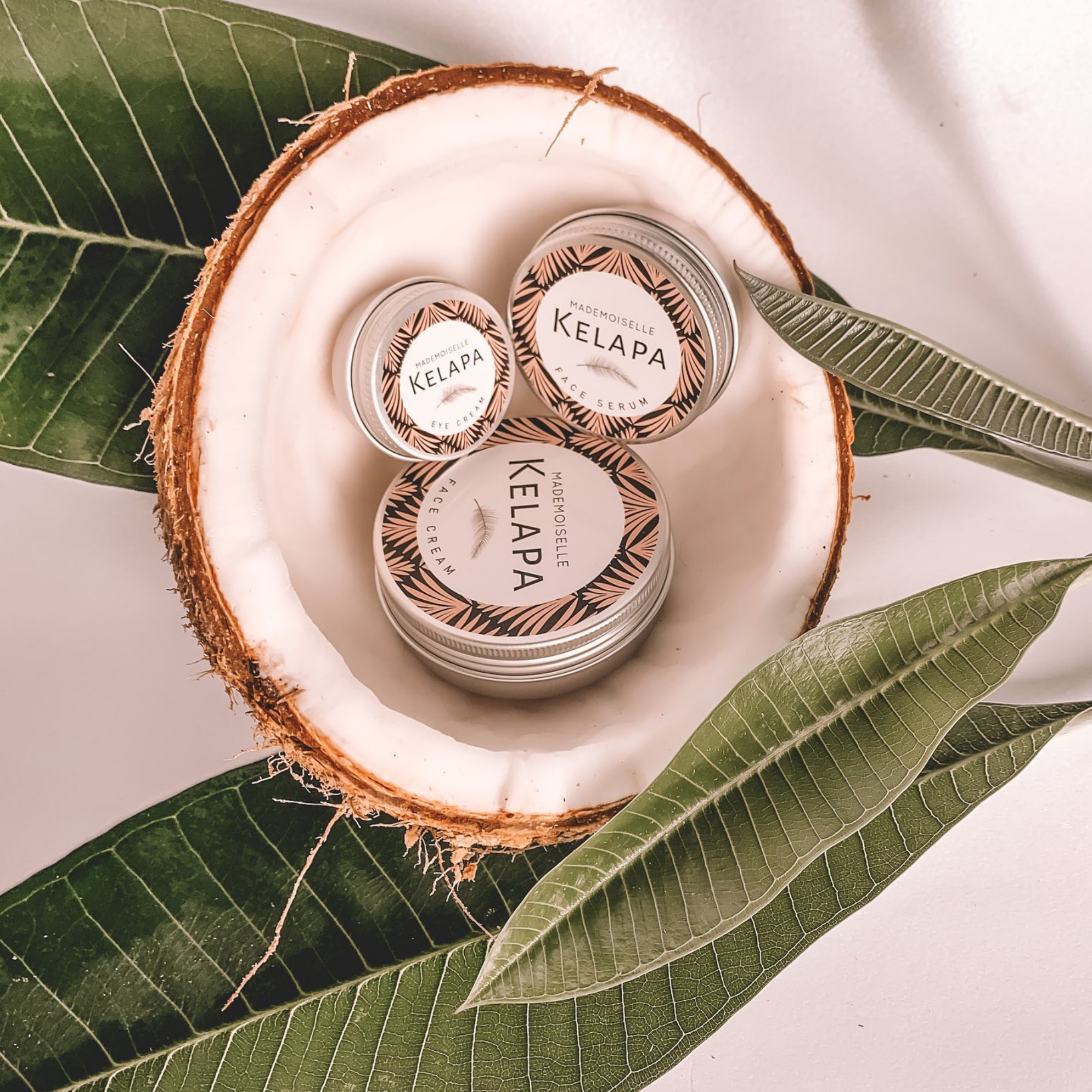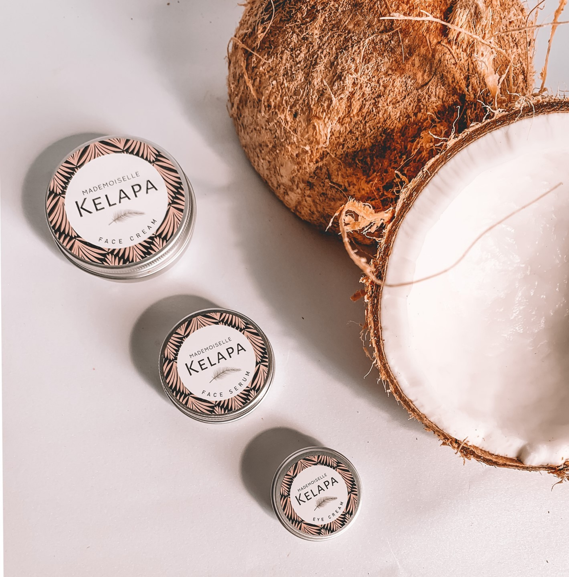 J’ai accompagné Mademoiselle Kelapa, marque française de cosmétiques naturels, dans la conception & la création complète de son univers visuel. En tant que directrice de création, j’ai conçu le logo, la charte graphique et l’ensemble des étiquettes produits, ainsi que le site e-marchand de lancement, en cohérence avec les valeurs de la marque : élégance, authenticité et savoir-faire local. L’objectif : créer une identité de Luxe, accessible, capable de séduire une clientèle, en quête de qualité et d’efficacité.
